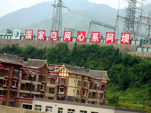 國家電網心系阿壩,對災后重建投入了大量人力物力,圖為映秀110KV變電站。