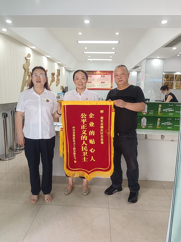 從孫先生的一席話中不難看出公證在法律實(shí)務(wù)運(yùn)用中有相當(dāng)重要的作用,它能預(yù)防糾紛,化解糾紛,為當(dāng)事人帶來(lái)財(cái)務(wù)與時(shí)間上的便利,也從側(cè)面反映了順慶公證處堅(jiān)持“崇法、尚信、守正、求真”的理念,不斷追求高水平辦案,高質(zhì)量出證,高熱情服務(wù),不斷加強(qiáng)公證的公信力,深受企業(yè)、群眾信賴。 南充順慶:公證為民暖人心贈(zèng)送錦旗表謝意 “服務(wù)無(wú)止境,細(xì)微顯真情”,小小的一面錦旗凝聚著該企業(yè)對(duì)順慶公證處服務(wù)工作的鼓勵(lì)和認(rèn)可,同時(shí)也在炎熱的夏日激發(fā)了全體工作人員的工作熱情。該企業(yè)的案例僅僅是順慶公證處經(jīng)辦的上萬(wàn)個(gè)公證案例中普通的一個(gè),卻是順慶公證處全心全意為人民服務(wù)的縮影,錦旗背后閃耀著順慶公證處的初心,只有初心不變方能得到始終。 (文/圖 王晨宇)