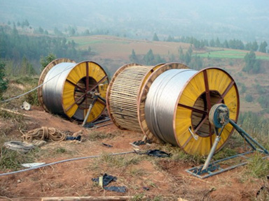 圖三:四川省強(qiáng)波電力工程有限公司在2005年承建的220KV大方變電站—110KV楊家橋變電站送電線路工程,圖為該工程N(yùn)17號(hào)塔按作業(yè)指導(dǎo)書要求正在做放線施工準(zhǔn)備。